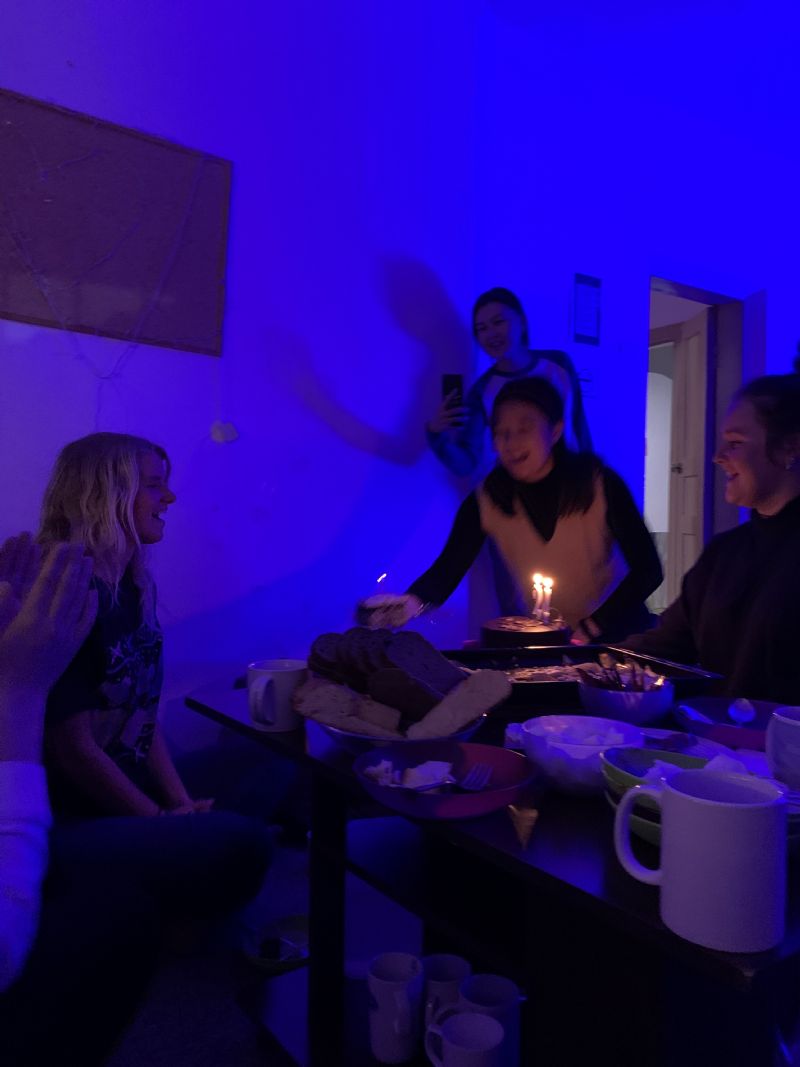 Sam and I walk towards my friend I had been meeting with. But first a man is highlighted to us both, so we go talk to him instead. (Invite the...